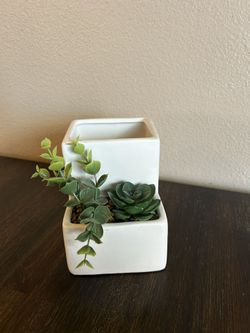 White Ceramic Pencil Cup With Faux Plants$5Corona, CA