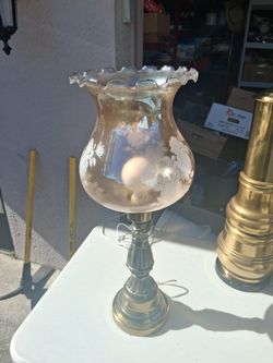 Hurricane Table Lamp With Flowrrs And Brass Base$45Felda, FL
