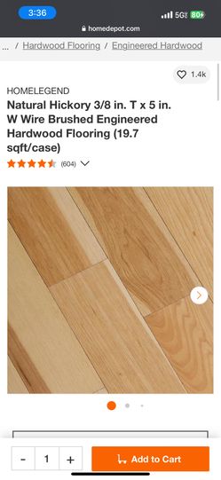 HOMELEGEND - Natural Hickory 3/8 in. T x 5 in. W Wire Brushed Engineered Hardwood Flooring (19.7 sqf$45North Providence, RI