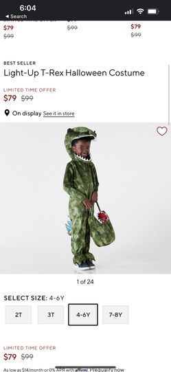 Pottery Barn Light up T Rex Costume With Treat Bag$60Murrieta, CA