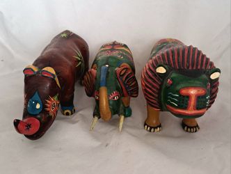 3 Hand Carved & Painted African Animals from Zimbabwe - Rhino, Elephant & Lion$30Apopka, FL