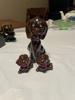 Vintage Ceramic Japan Brown Dachshund Dog With 2 Puppies on Chain$15Canby, OR