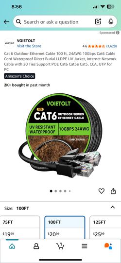 CableGeeker Cat6 Outdoor & Indoor 100ft Copper$20Miami, FL