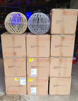 10 Rattan Oasis Hanging Pendant Lamp With 14 X 14 Inches Gray 3 Natural Color New In Box $50Bonney Lake, WA