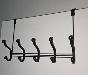 Home Basics Over the Door 5 Hook Hanging Rack. Black color. 15"L 11"D