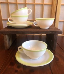Vintage Pyrex 4 Cups & 3 Saucers Milk Glass With Lime Green Band$20Scottsdale, AZ