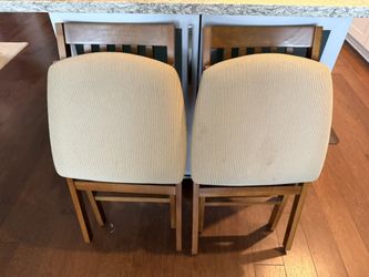 Stakmore solid hardwood slat back folding chairs with upholstered beige fabric seats - set of 2$50Woodinville, WA