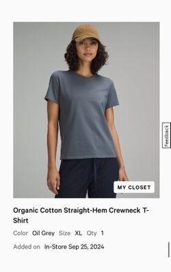 lululemon Organic Cotton Straight-Hem Crewneck T-Shirt, Women’s XL in Oul Grey$30Woodinville, WA