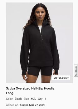 lululemon Scuba Oversized Half-Zip Hoodie Long, Women’s M/L in black$50Woodinville, WA