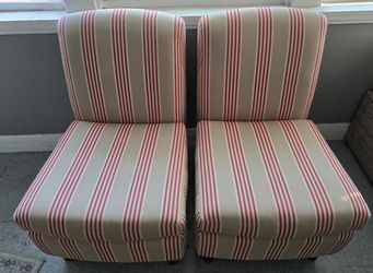 Two Pottery Barn Upholstrered Striped Armless Chairs$40Chicago, IL