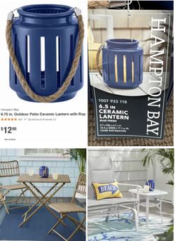 Hampton Bay 6.5” Patio Blue Ceramic Lantern w/ Rope Handle set of 2$15Tustin, CA