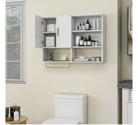 Bathroom Wall Cabinet Wood Wall Mounted Medicine Cabinet with 2 Doors and 4 Open Shelves Over Toilet Storage Cabinet Organizer with Towel Bar,White$50Downers Grove, IL