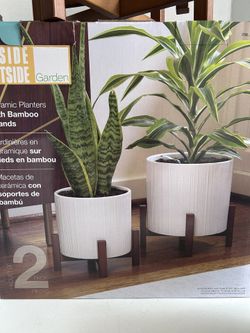 Inside Outside Garden, 2 Pack - White Ceramic Planters w/ Bamboo Stands $30Downers Grove, IL