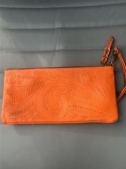 Orange leather clutch$100Leander, TX