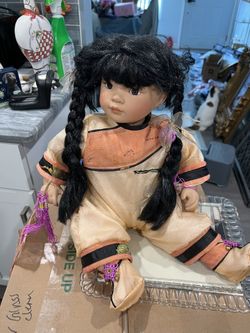 Porcelain oriental doll 15 inches when she’s sitting beautiful detailing don’t miss out$30New Chicago, IN