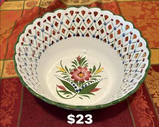 Vintage Portugal Hand Painted Open Lace Ceramic Bowl 10” X 4” Floral Pattern$23Euclid, OH