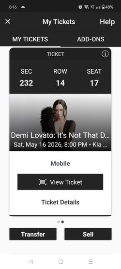 Demi Lovato Honda Center$100Laguna Niguel, CA