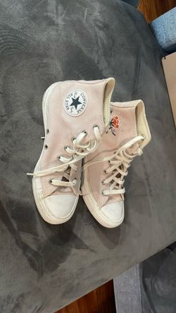 Amethyst Pink converse with flowered embroidery women’s size 8$20Quartz Hill, CA