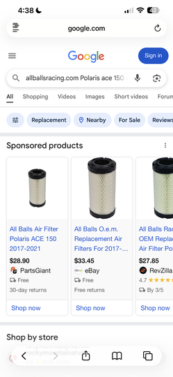2 Polaris ace 150 air filters$30Irwindale, CA