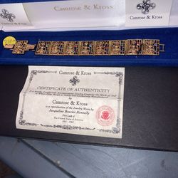 JBK Camrose & Kross gold tone rhinestone Guan Yin panel 7" bracelet $140Moreno Valley, CA
