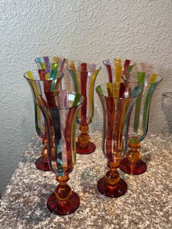 PIER ONE TALL FIESTA STRIPPED GLASSES SET OF 7$75Whittier, CA