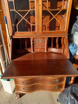 Antique Secretary Desk And Glass Hutch And Drawers Below$125East Aurora, NY