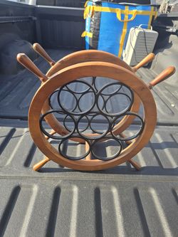 Ship's Helm Solid Wood 7 Bottle Wine Bottle Holder Rack tiller steering wheel$15Dallas, TX