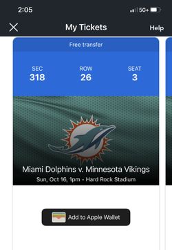 4 Tickets Dolphins Versus Vikings $165Miami, FL