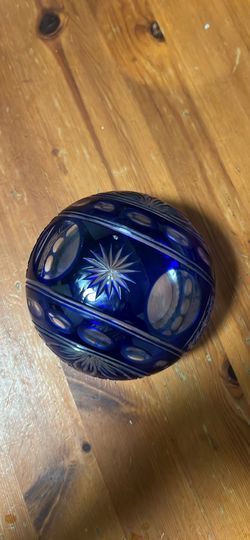 Vintage Bohemian cobalt blue cut-to-clear crystal glass rose bowl. $40Miami, FL