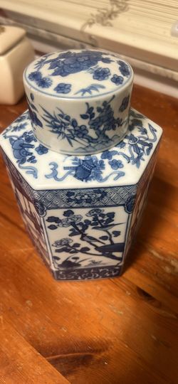 This is a vintage Chinese blue and white hexagonal porcelain ginger Or tea caddy$50Miami, FL