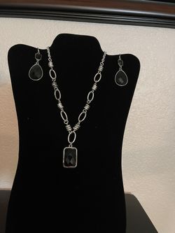 Black Bead And Silver Chain Necklace And Earring Set$10Laguna Hills, CA