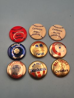 Lot X 9 Crane Potato Chips 1984/1986 Pins Twins Yankees Mariners Os Phil's$30Pumpkin Center, CA