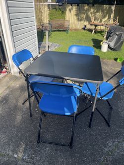 Nice folding patio table with 4 plastic patio chairs$79Edmonds, WA