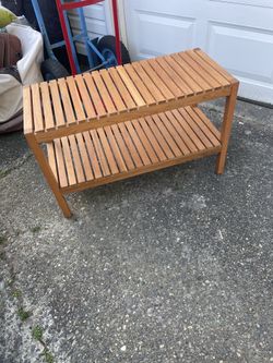 Nice solid wood bench with rack shoes$39Edmonds, WA