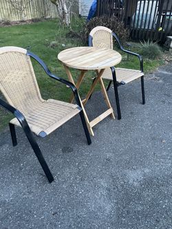 Nice PATIOJOY wood folding patio table with 2 Wicker chairs$69Edmonds, WA