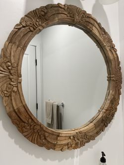 NEW Hand Carved Wood Circular Round Mirror bathroom Vanity 28 3/4” wide Rustic Wooden$60Paramus, NJ