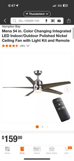 Mena 54 in. Color Changing Integrated LED Indoor/Outdoor Polished Nickel Ceiling Fan with Light Kit and Remote$80Phoenix, AZ