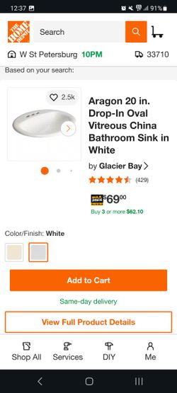 Glacier Bay Aragon Oval Drop Sink$35Seminole, FL