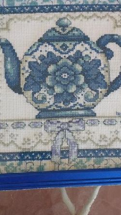 Blue And White Framed Cross Stitch Teapot$10Lehigh Acres, FL