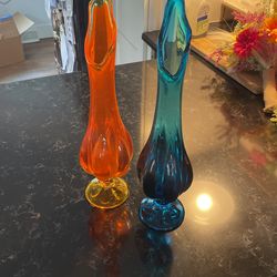 MCM Blue And Orange Tall Vase Vintage Viking Glass$260Bridgeton, NJ