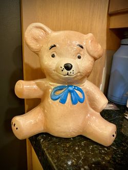 Vintage brown teddy bear cookie jar with blue tie$10Gresham, OR