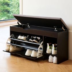 3-Tier Shoe Storage Bench w/ Cushion + Hidden Storage, Black - Brand New!
