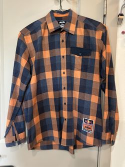 MENβS OFFICIAL RED BULL KTM RACING CHECKED FLANNEL CASUAL SHIRT SIZE L $50Richardson, TX