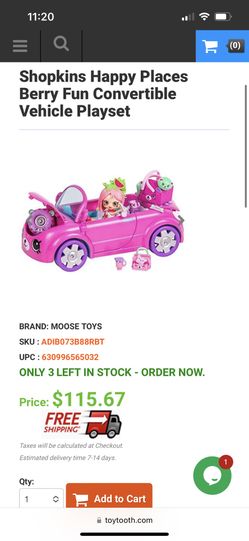 Shopkins Happy Places Berry Fun Convertible Vehicle Playset$10Westmont, IL