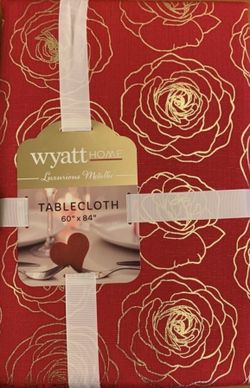 Valentine’s Day Red & Gold Rossettes tablecloth 60X 84 NEW$25San Marcos, CA