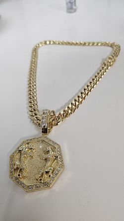 I Deliver I Ship 14k Gold Plated 12mm Flat Cuban Link Chain And Pendant 22 Inch$150Pembroke Pines, FL