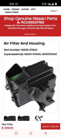 2016 nissan altima air filter housing With Pipe And Air Flow Sensor$99Houston, TX