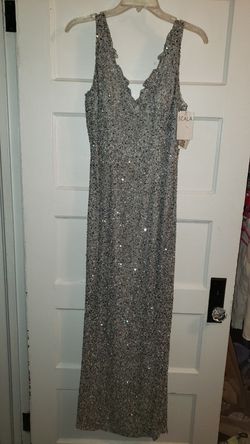 Scala Silver full length scalloped beaded evening dress size small$125Gastonia, NC