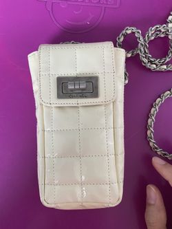 RareRAR Vintage Chanel phone/credit card crossbody cream color patent leather bag. Some minor markings and scuffs. You can fit your iphone , credit $500New York, NY