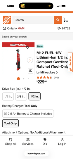 Milwaukee m12 compact ratchet 1/2 in$160Banning, CA